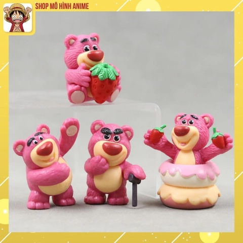 Bộ 4 Mô Hình Gấu Dâu Lotso, Hoạt Hình Disney Cao 5cm, Mô Hình Decor Trang Trí, Bộ Sưu Tập Nhân Vật Yêu Thích