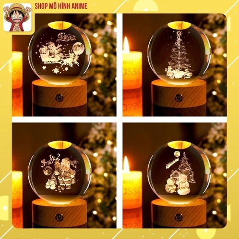 Đèn Ngủ 3D Quà Cầu Pha Lê Giáng Sinh Ấm Áp, Decor Trang Trí, Quà Tặng Ngày Lễ Noel