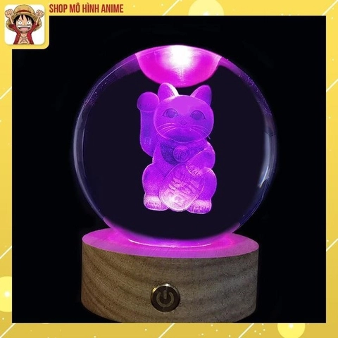 Đèn Quả Cầu Pha Lê Mèo Thần Tài, Mèo May Mắn, Đèn Ngủ, Decor Trang Trí, Phong Thủy, Quà Tặng Sinh Nhật