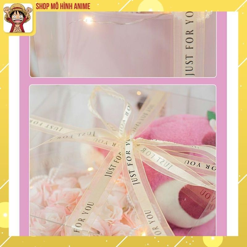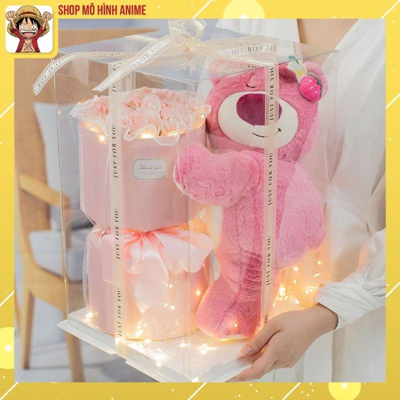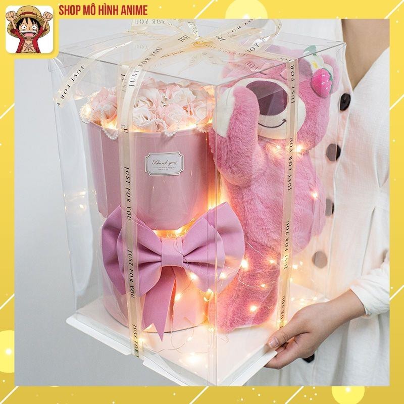 Hôp Quà Tặng Trong Suốt, Gấu Dâu Lotso Ôm Hoa Hồng Siêu Dễ Thương, Có Đèn Led, Thích Hợp Làm Quà Tặng Sinh Nhật