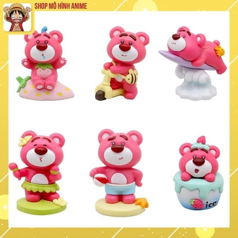 Mô Hình 6 Nhân Vật Gấu Dâu Lotso Đi Xe Đáng Yêu Cute, Cao 8cm Thích Hợp Decor Trang Trí Phòng Ngủ, Quà Tặng Sinh Nhật