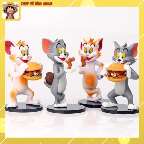 Mô Hình Tom Và Jerry, Bộ 4 Mô Hình Tom Ăn Hamburger Jerry Siêu Dễ Thương,Cao 10cm, Thích Hợp Decor Trang Trí, Bộ Sưu Tập